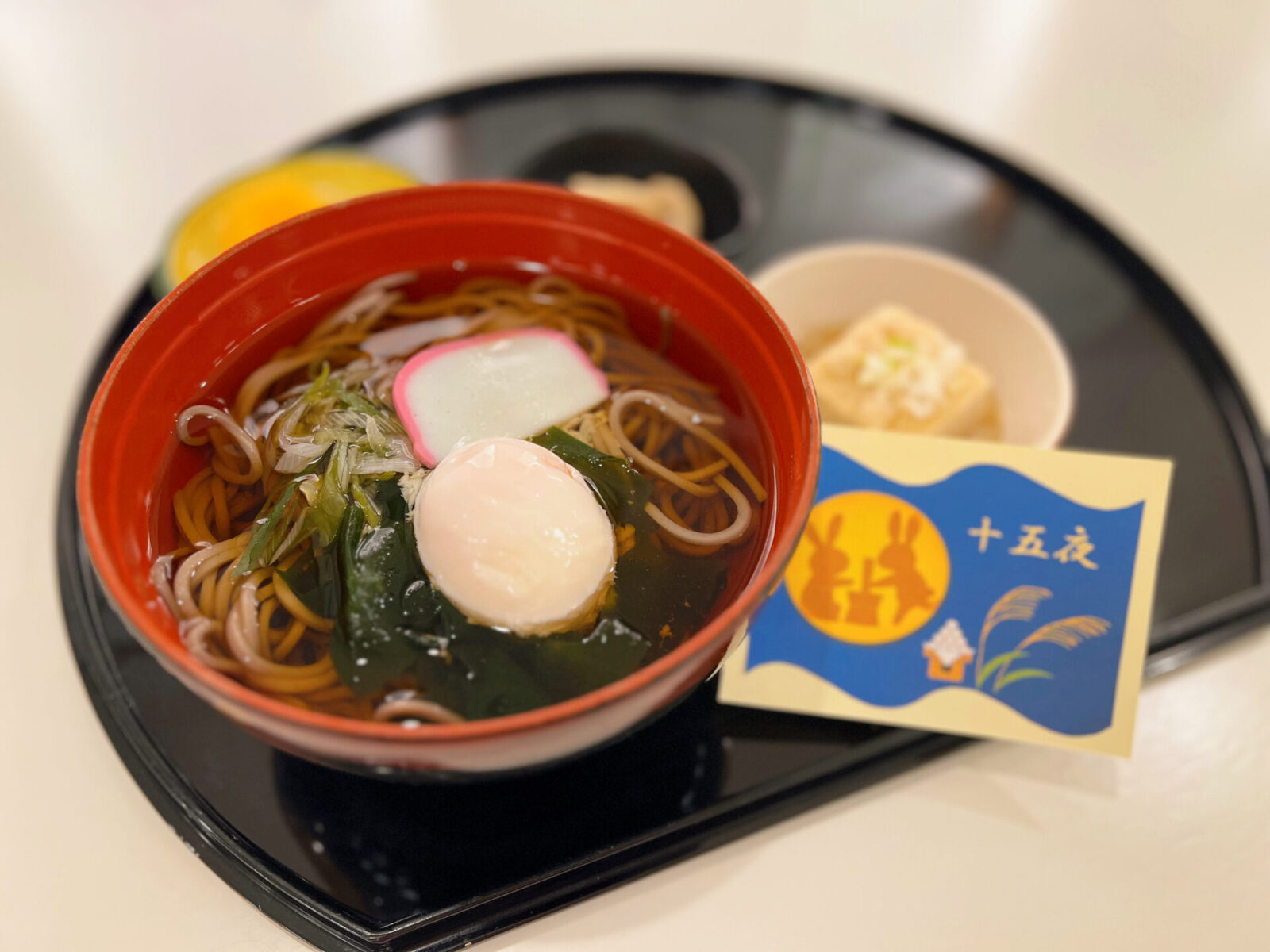 卵を満月に見立てたそばは、黄身が月・白身がおぼろ雲のように映り、シンプルな味わいが魅力的でした。