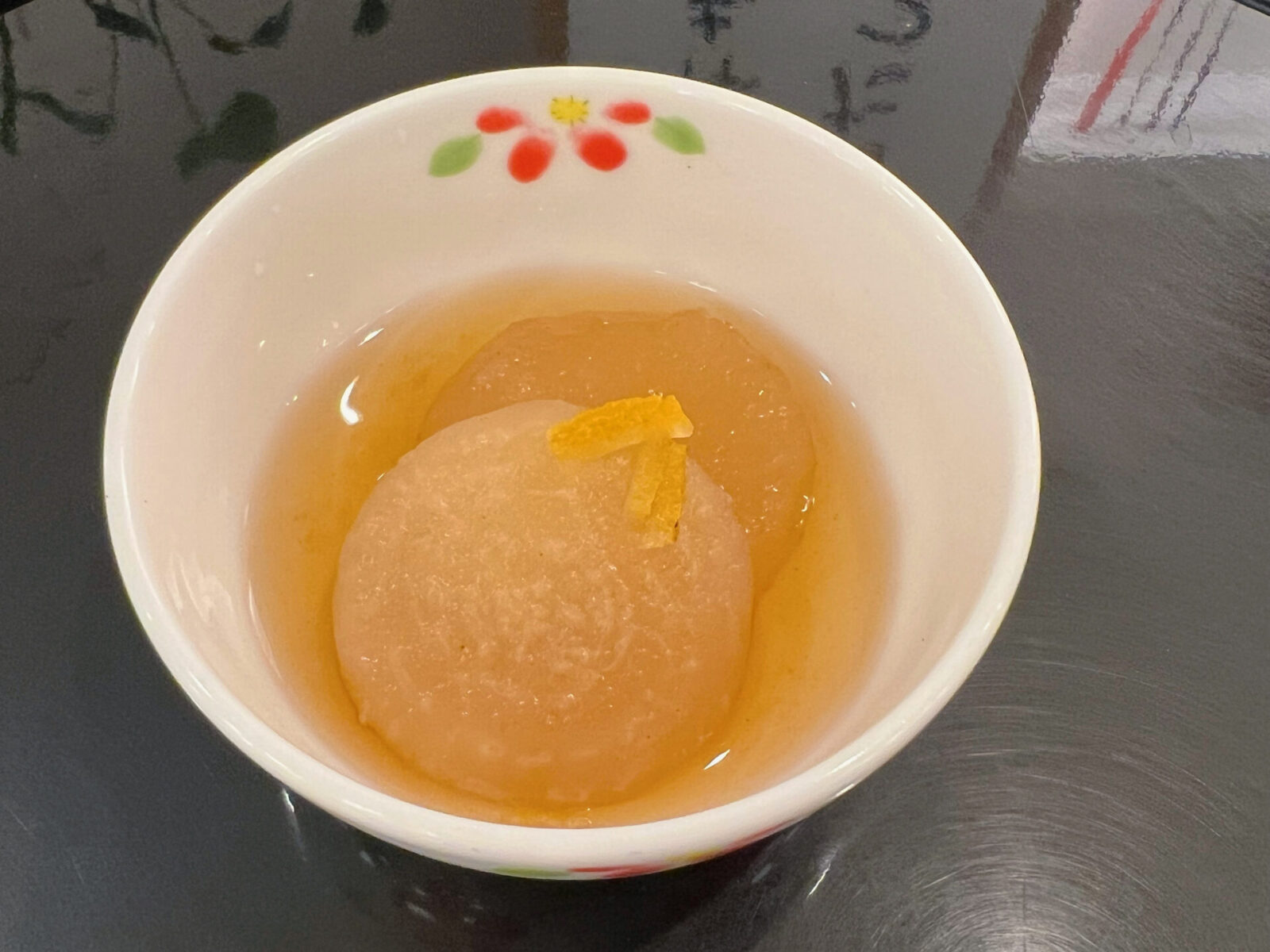 大根の上にのせられた柚子の香りがよく、味がしみ込んだ大根と相性抜群でした☺