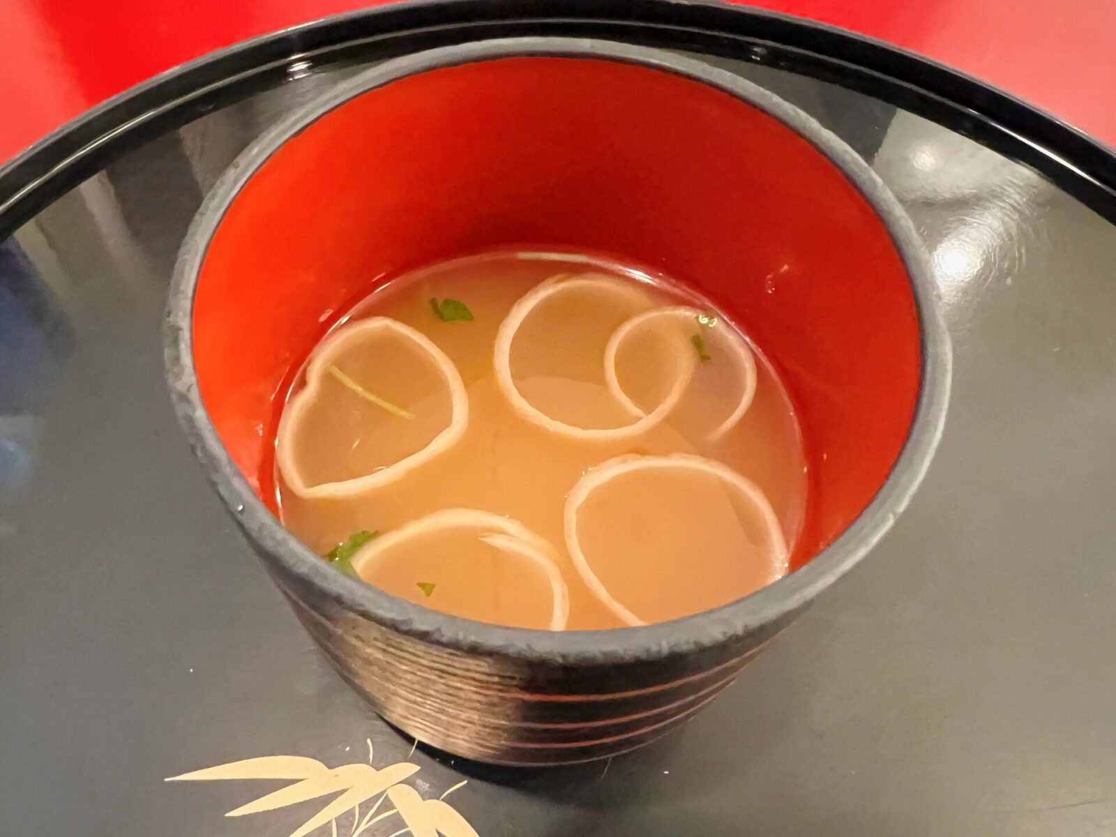 赤だしは写真からも分かる色の濃さで濃厚なうまみとコクが感じられました✨