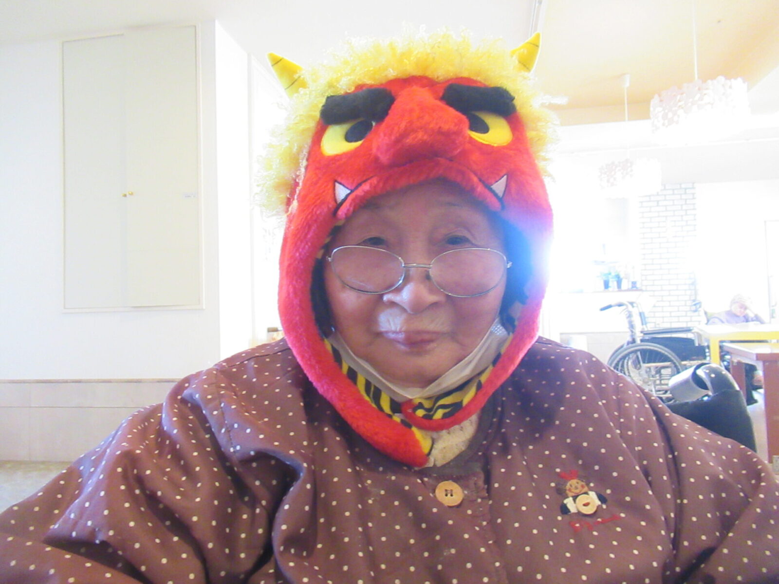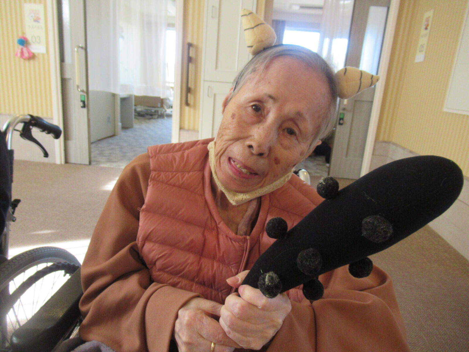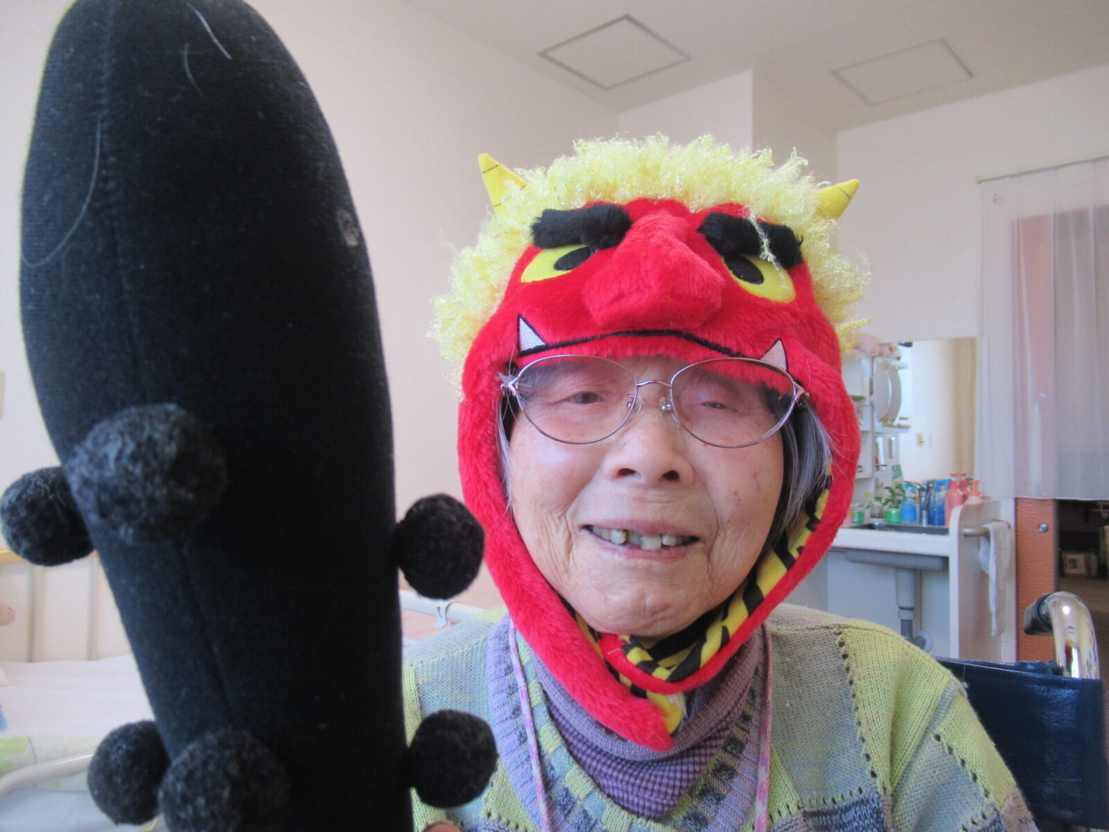赤鬼や青鬼、そして金棒も持っていただき、見ている他の入居者様も「似合ってる」「可愛いね~」など皆様とても楽しんでくださいました👹