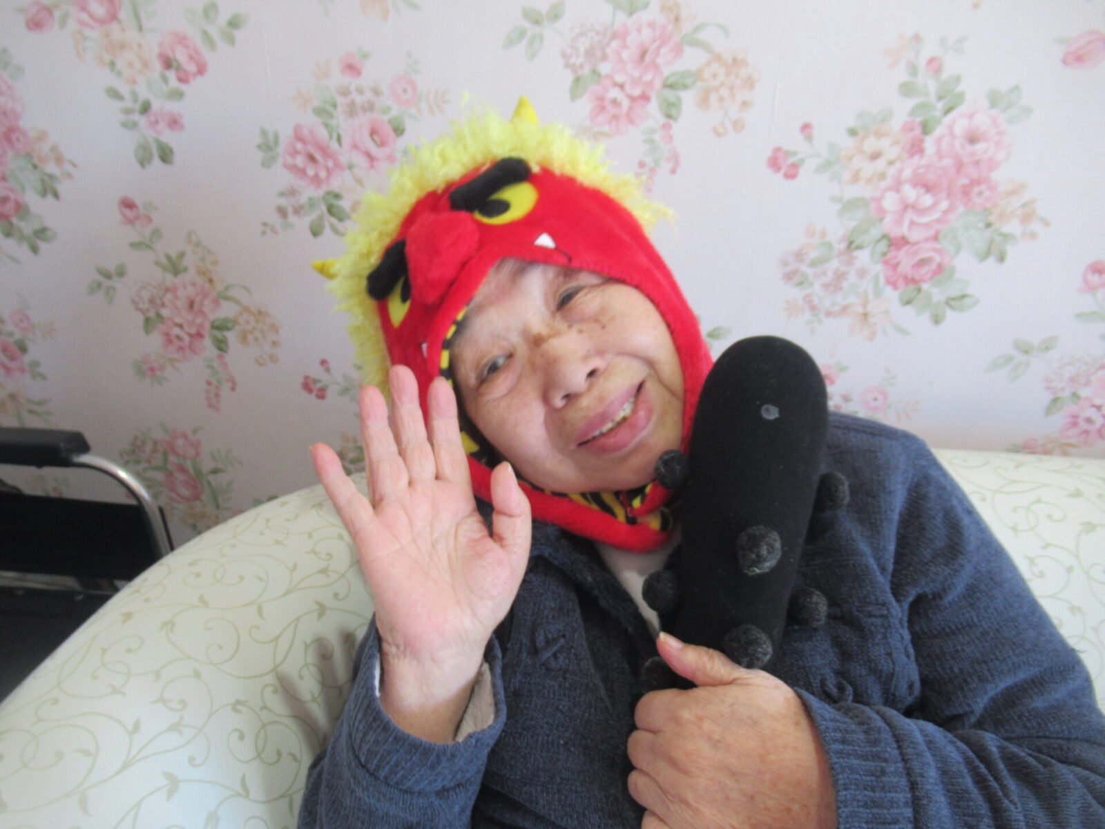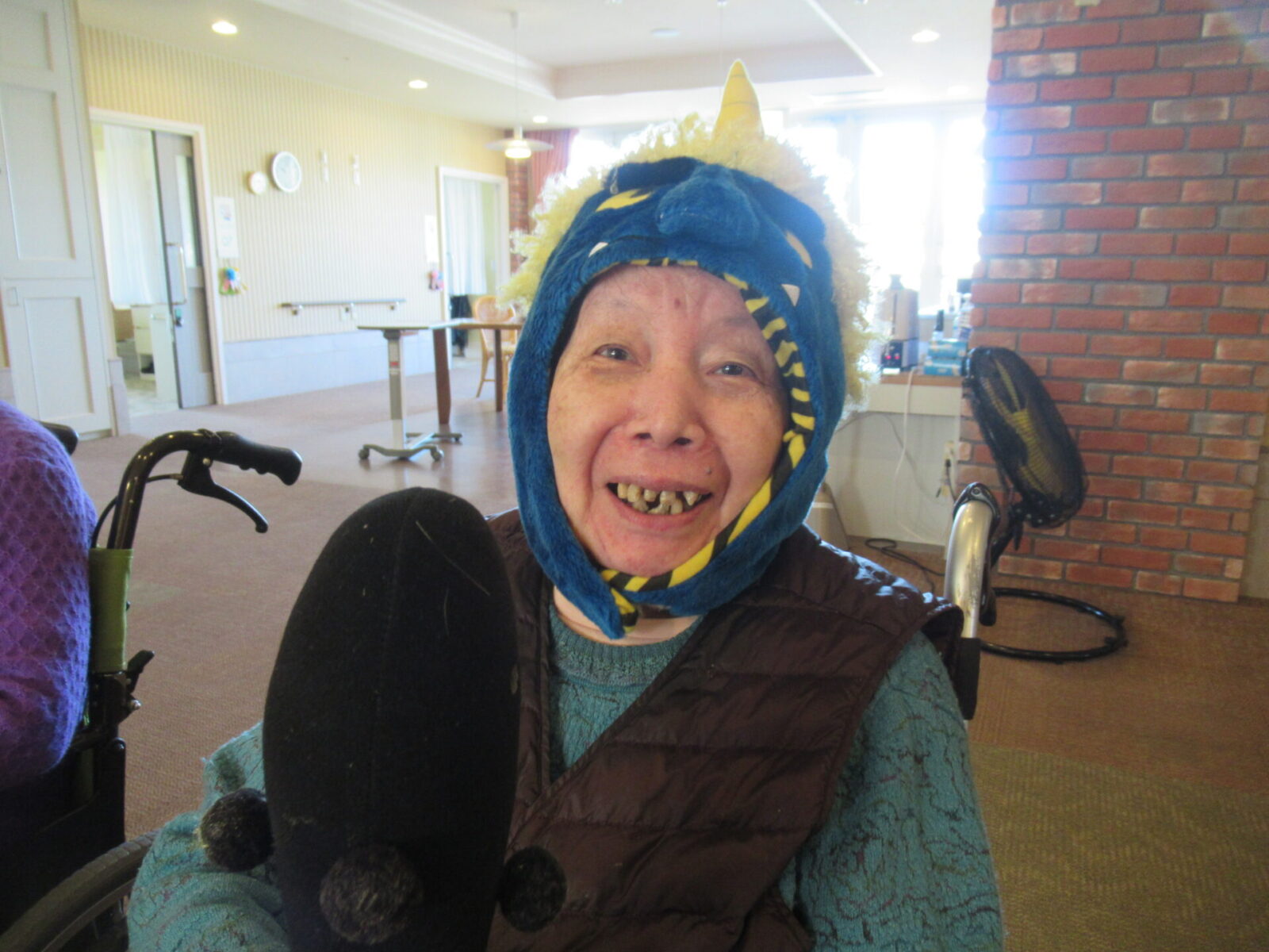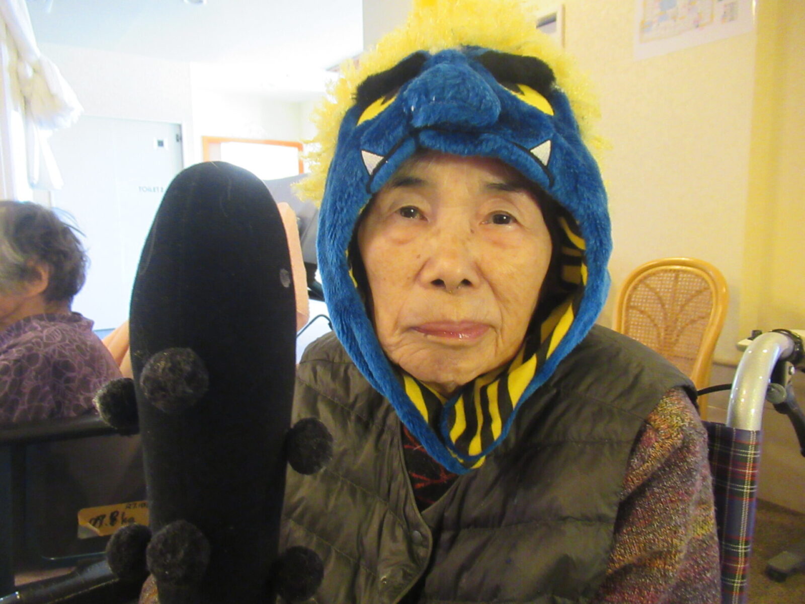 赤鬼や青鬼、そして金棒も持っていただき、見ている他の入居者様も「似合ってる」「可愛いね~」など皆様とても楽しんでくださいました👹